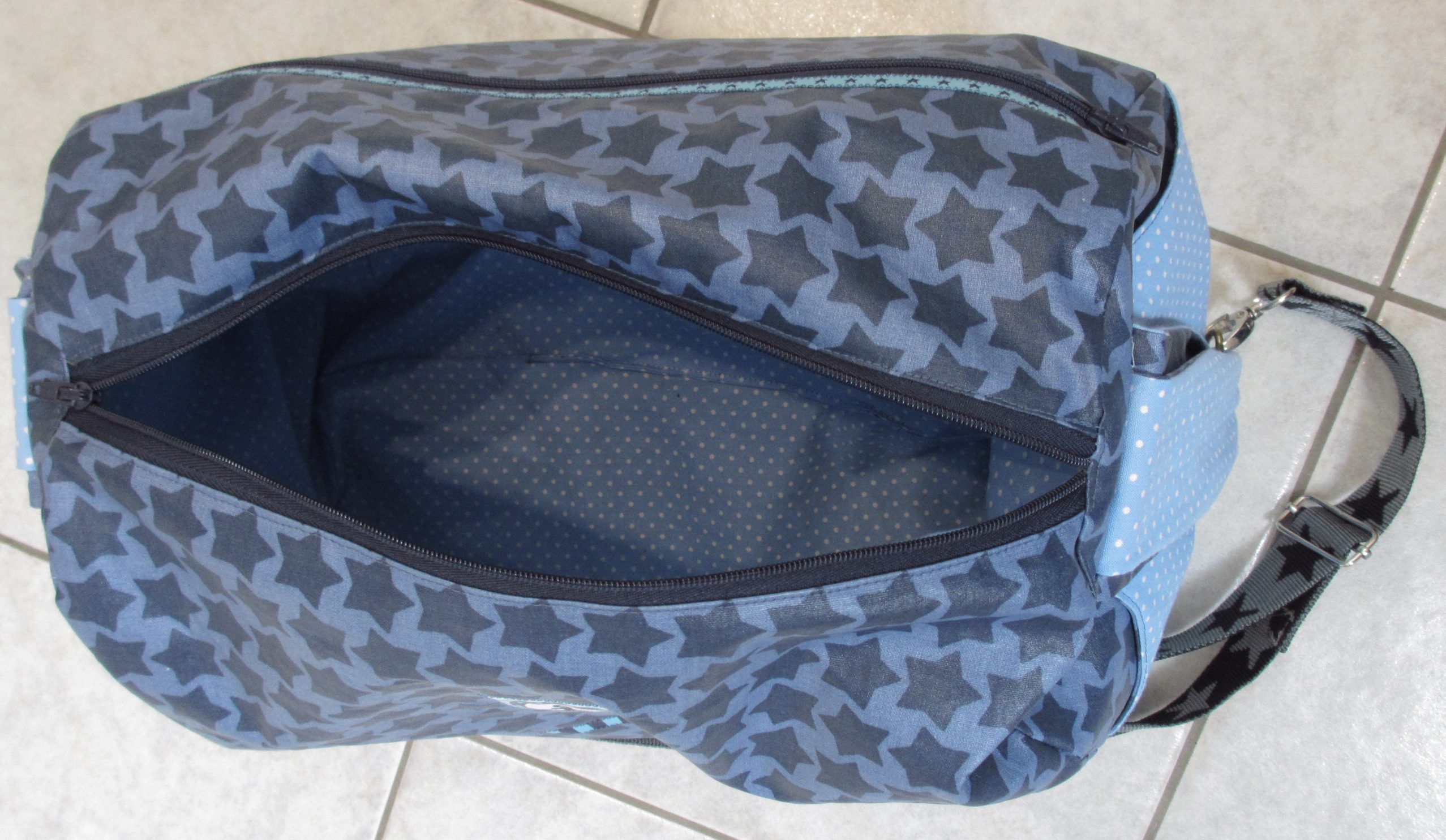 So viel übrigens zum Thema, ich kaufe keinen neuen Stoff und nähe alle Taschen aus Resten. Aber an dem blauen staaars bin ich natürlich nicht vorbeigekommen…