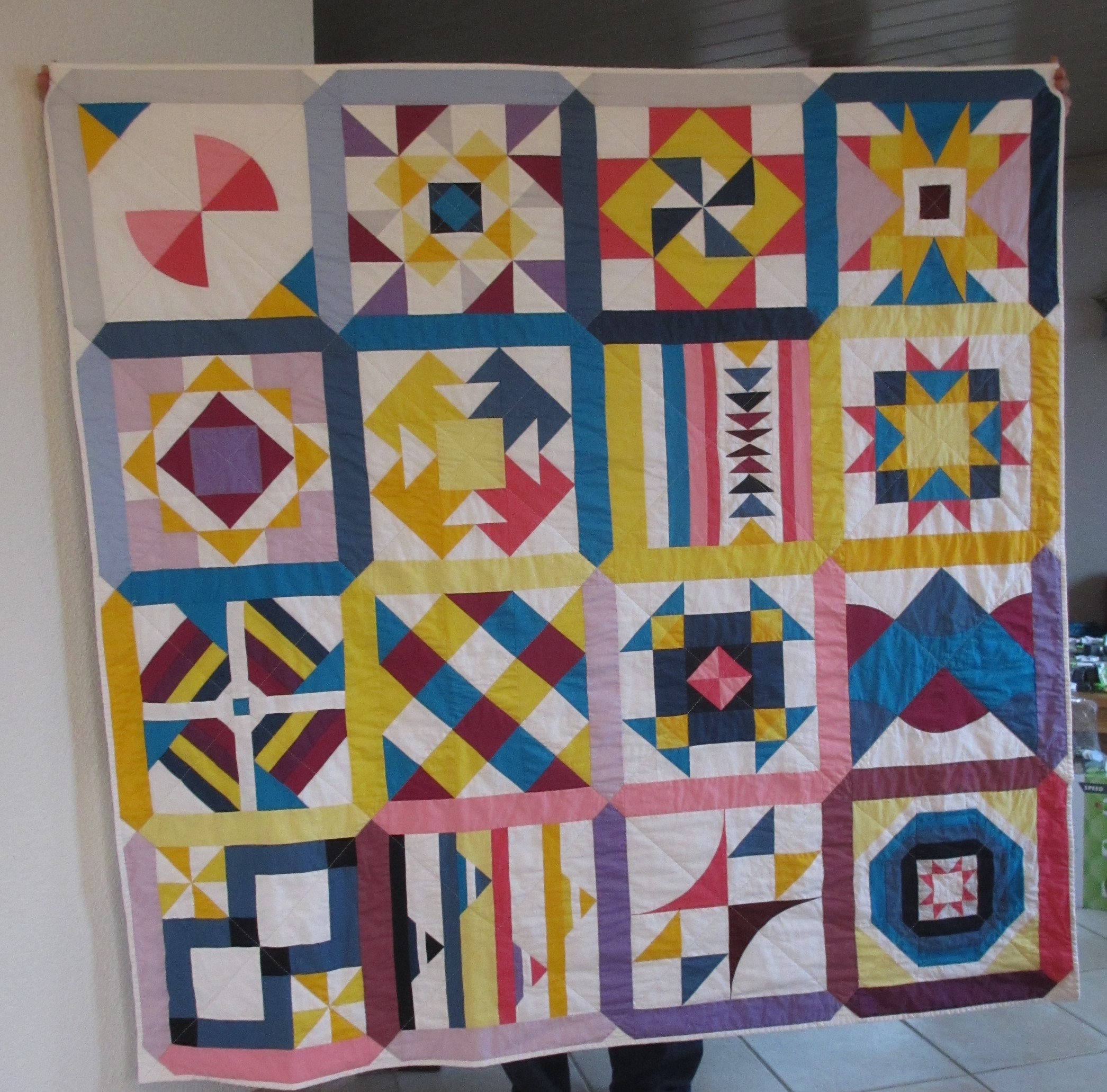 Aber wenigstens habe ich beim Summer Sampler 2020 am Heiligen Abend noch das Binding komplett annähen können. Am nächsten Tag musste er nur noch gewaschen werden. Und mit dem Heizlüfter im Keller war er an der Leine auch innerhalb von drei Stunden trocken.