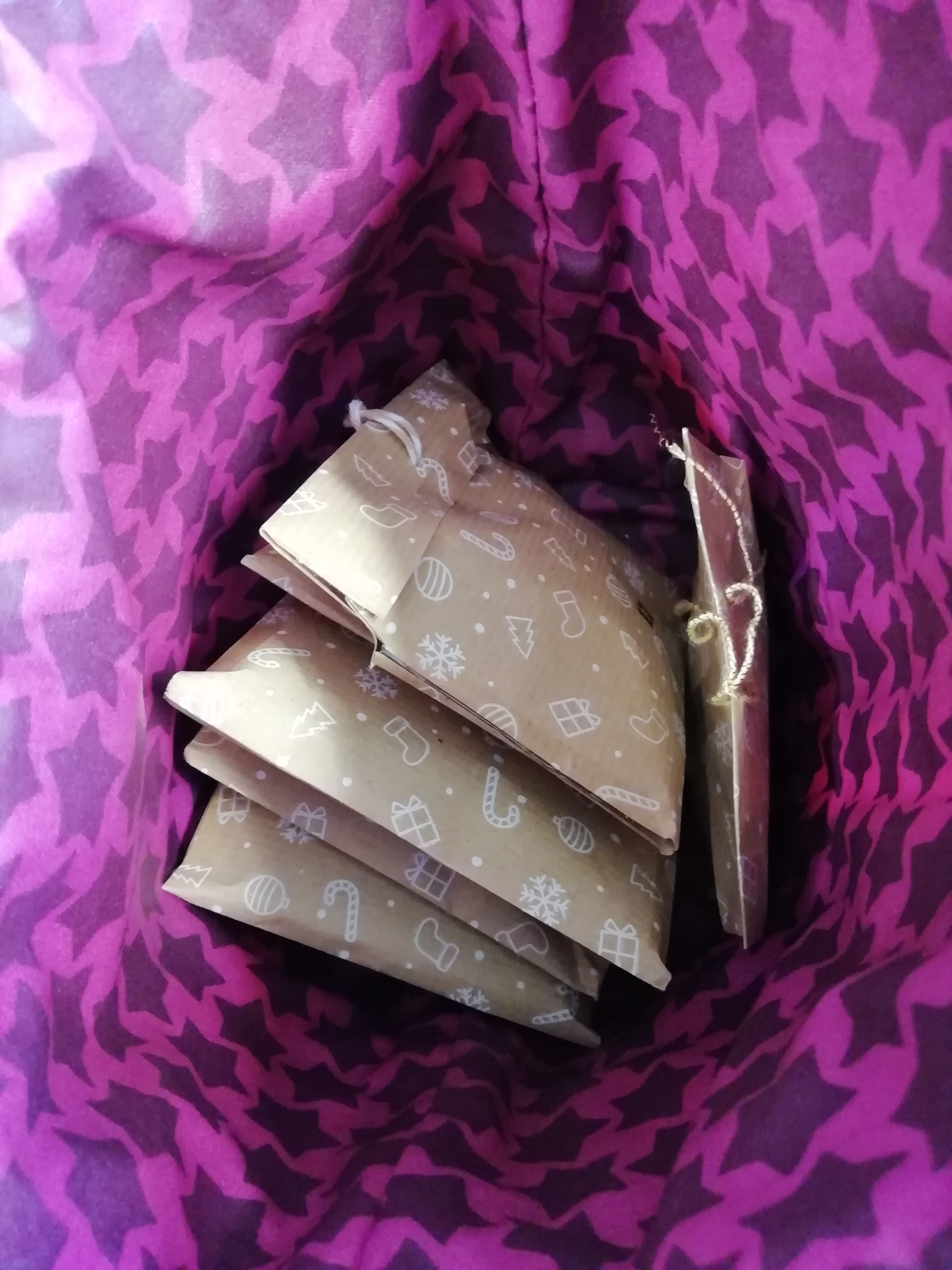 Für die Lehrer habe ich über 20 „Putzerle“ genäht. Wir hatten im November eine iPad-Schulung, da kam mir der Gedanke, dass so etwas ziemlich nützlich sein kann… Verpackt wurden sie in die leeren Adventskalendertäschchen von Cousine Lisa, das hat genau gepasst und jetzt ist alles aufgeräumt 😉