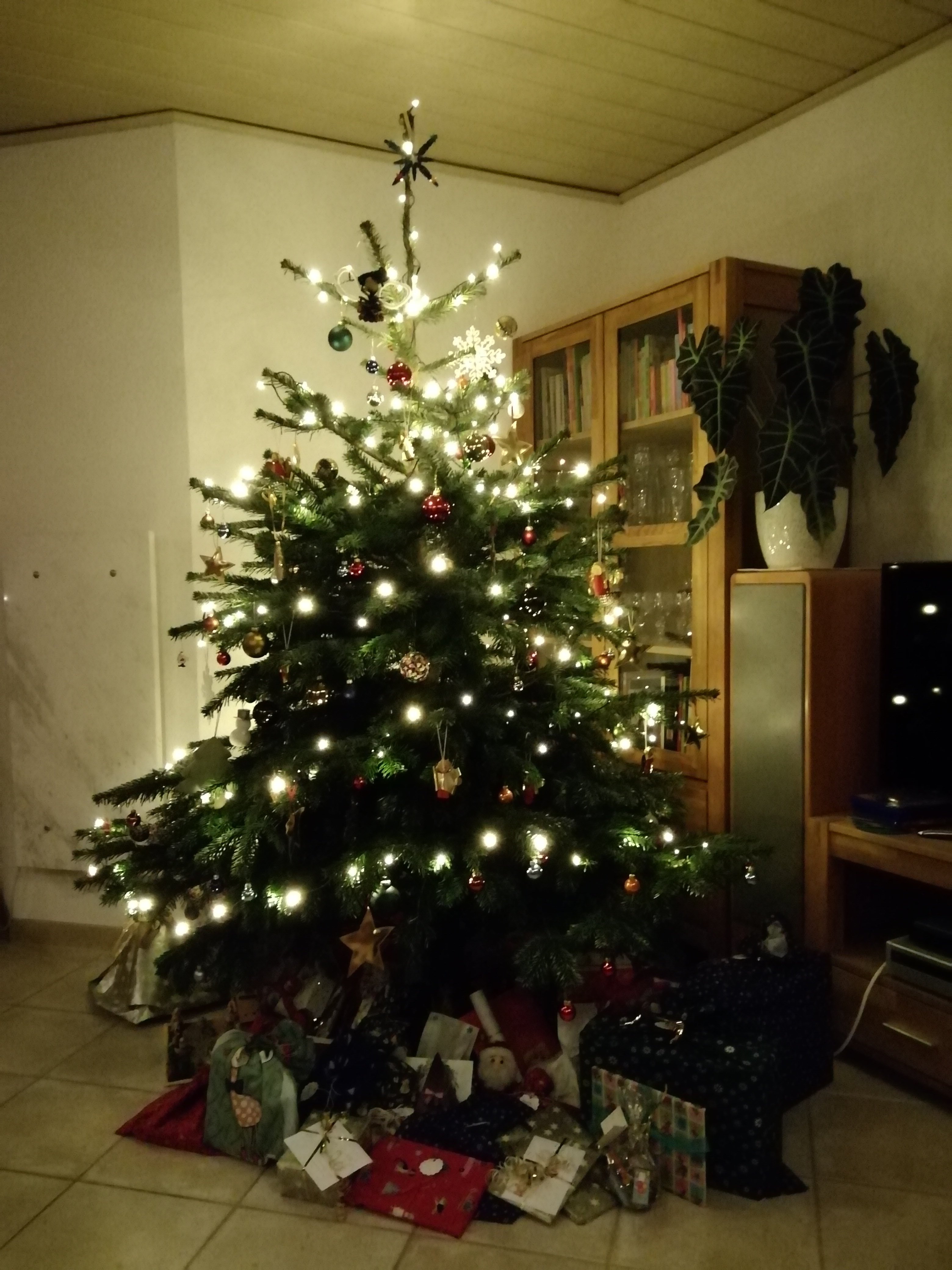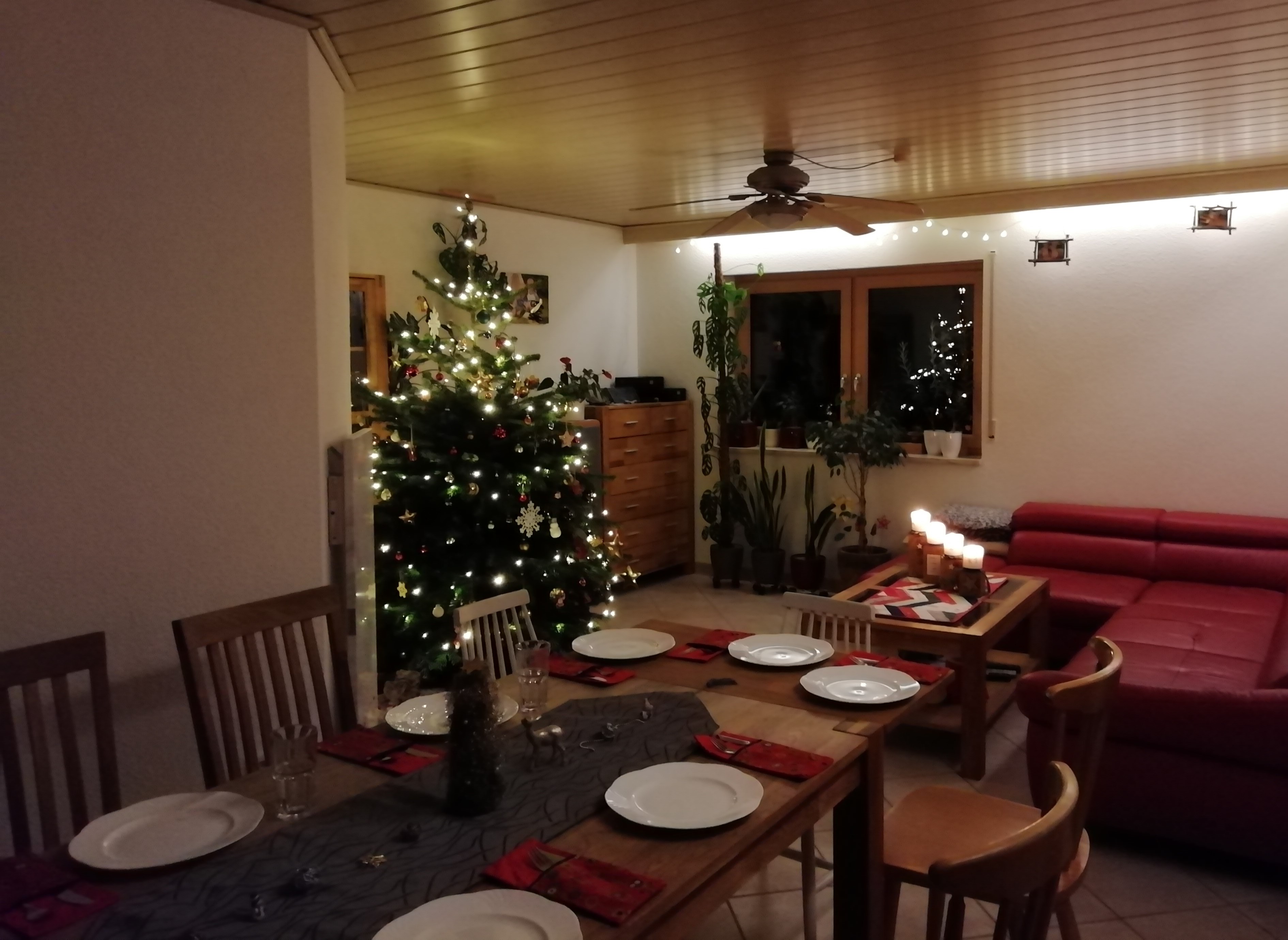 Das Essen am Heiligen Abend und heute wurde wieder im Kreise der Familie gefeiert. Gestern gab es Schnitzel und Kartoffelsalat und heute einen gemischten Salat, Gulasch mit Erbsen-Reis und eine Ananas-Joghurt-Nachspeise. Jeder hat mal gekocht und etwas mitgebracht, lecker war es!