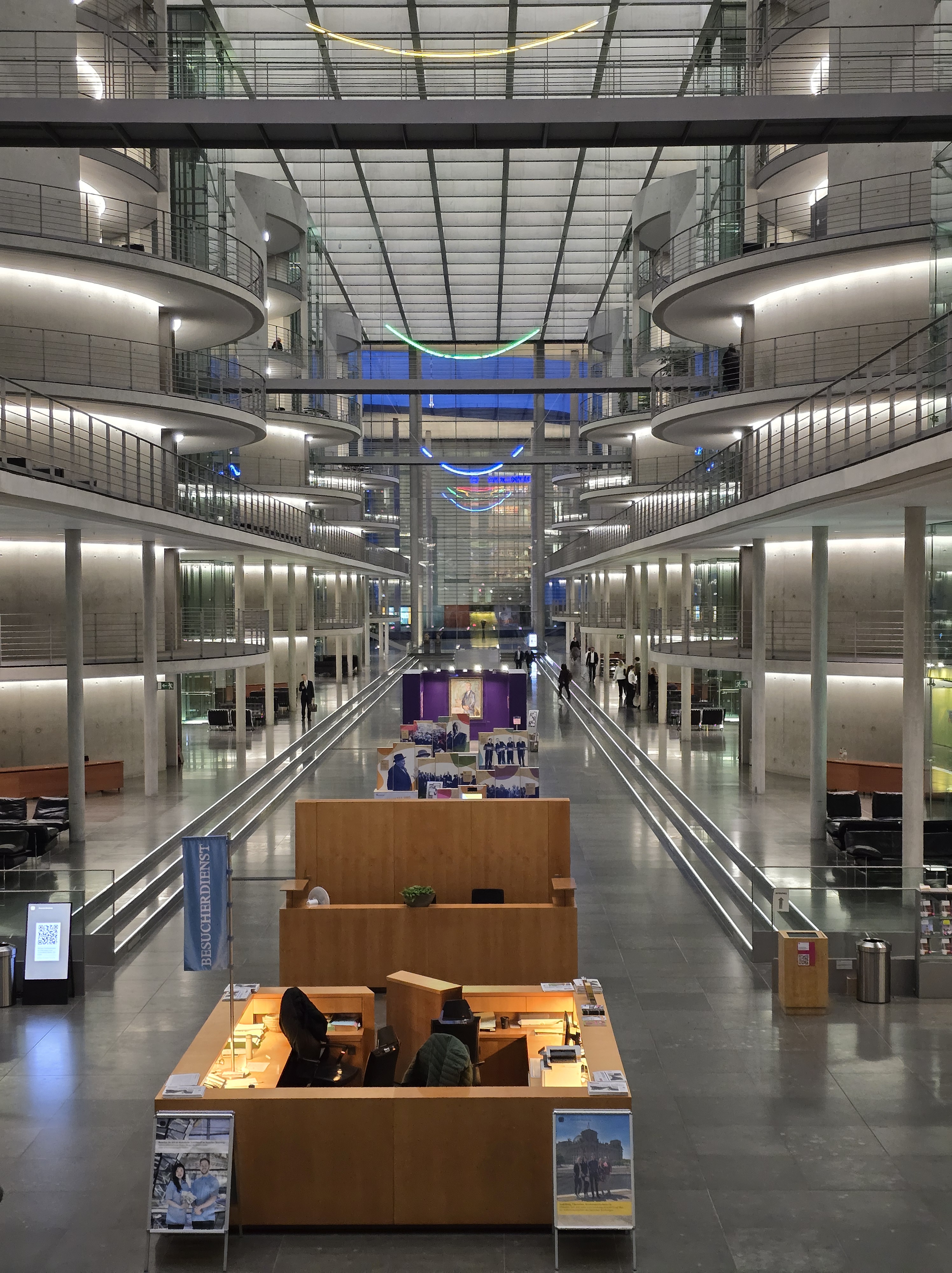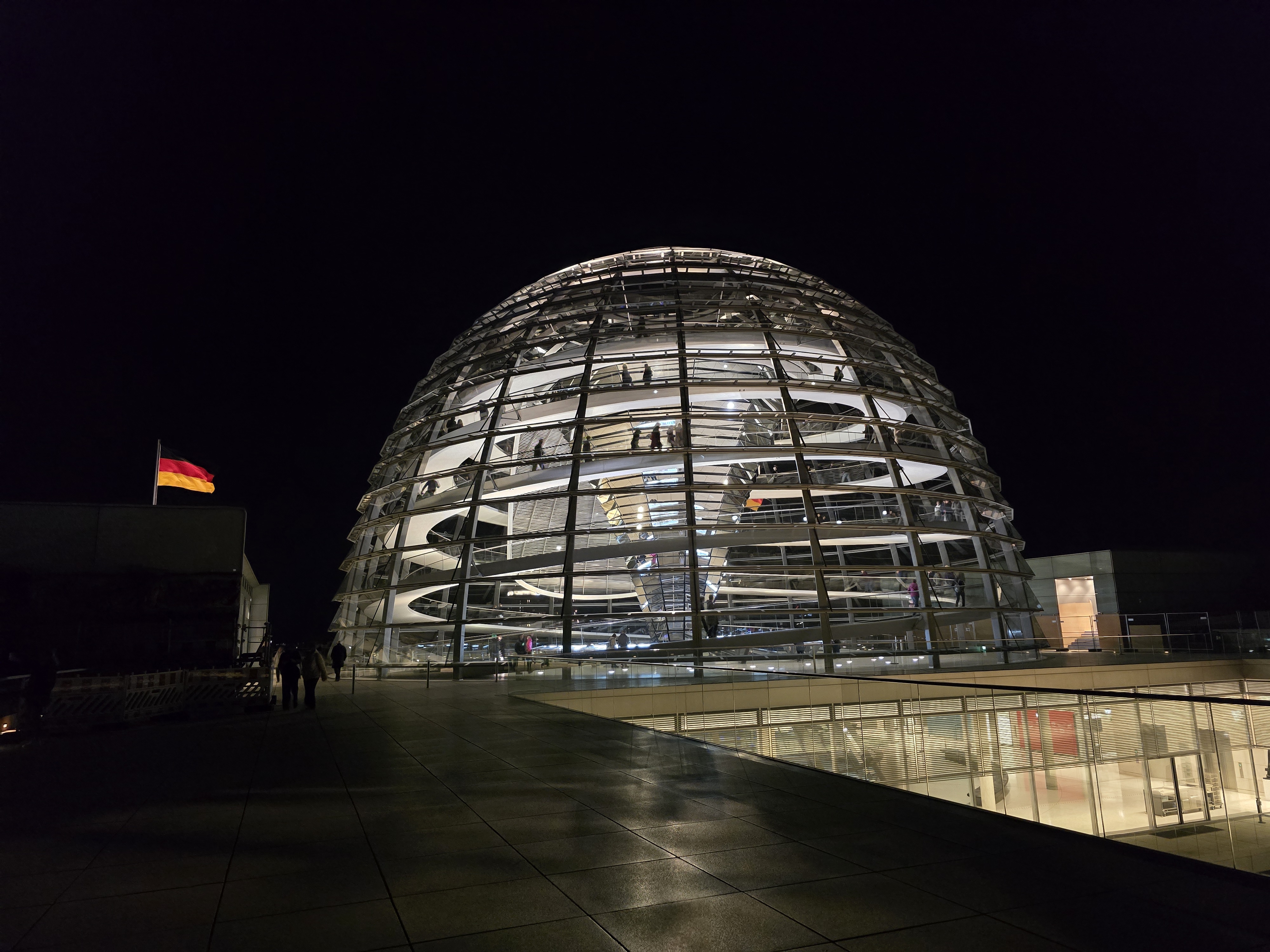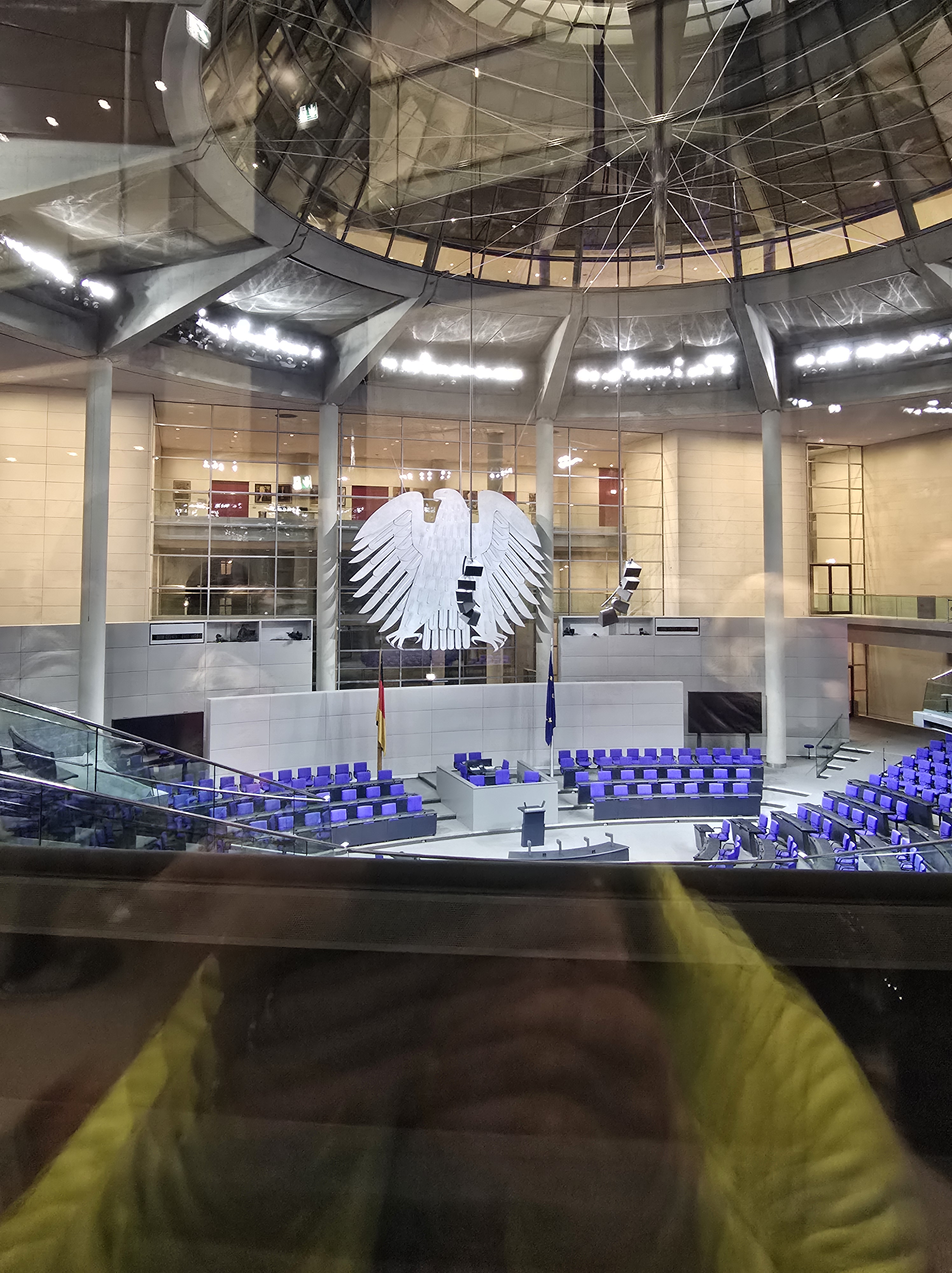 Den zweiten Sicherheitscheck durften wir dann etwas später vor dem Reichstagsgebäude durchmachen – noch gründlicher als zuvor. Im zweiten Stock erlebten wir anschließend einen kurzweiligen Vortrag auf der Besuchertribüne mit zwei Schulklassen. Danach war noch eine halbe Stunde Zeit, die Kuppel des Reichstags zu besuchen.