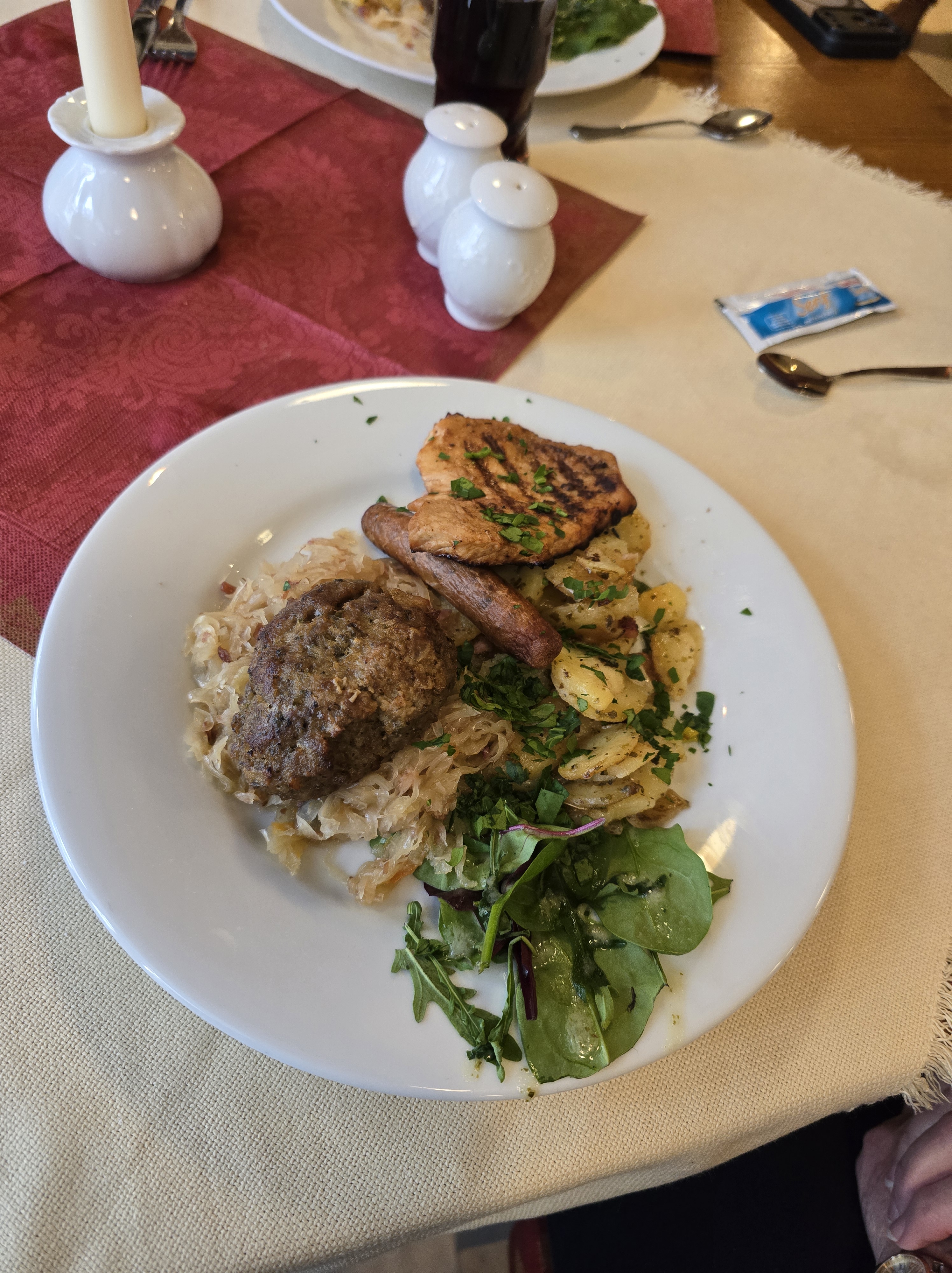 Am Donnerstag ging es bereits um halb 9 los. Der erste Programmpunkt führte uns zur Bundesnetzagentur für Elektrizität, Gas Telekommunikation, Post und Eisenbahnen. Falls jemand Probleme hat mit irgendeinem dieser Punkte, kann man sich gerne jederzeit an diese Agentur wenden. Die vortragende Mitarbeiterin war sehr kompetent und hat uns wunderbar unterhalten. Das nächste Mittagessen fand um 12 Uhr ihm Steakrestaurant Bolte’s im Nikolaiviertel statt, für mich gab es die vegetarische Variante. Die Stunde danach hatte man noch Zeit, durch dieses schmucke Viertel und zum Humboldt Forum zu flanieren.