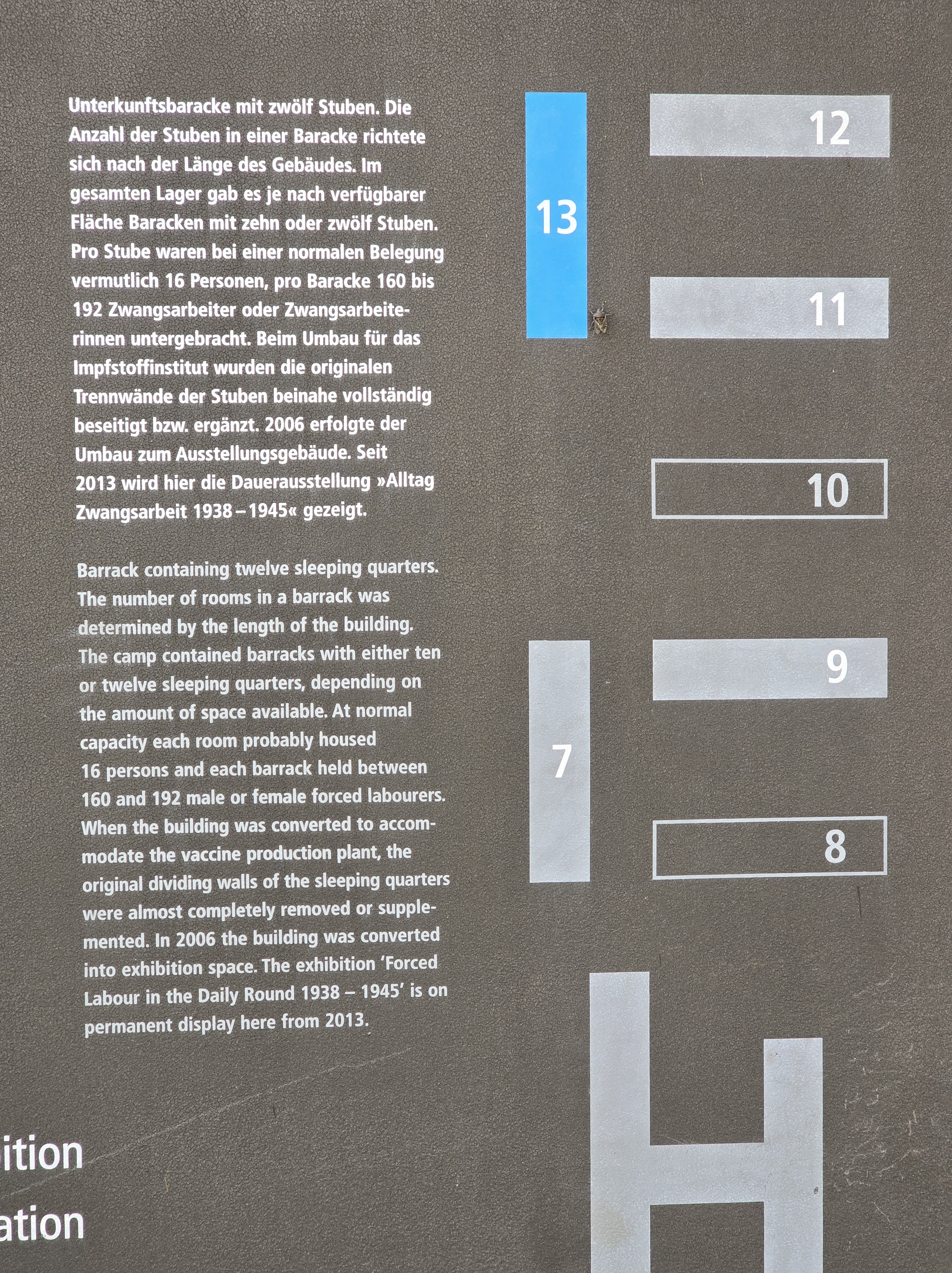 Anschließend war der Besuch des Dokumentationszentrums NS-Zwangsarbeit vorgesehen. Die 13 Baracken, von denen noch 11 seht gut erhalten sind (und einige seit Jahren als Kita, Gärtnerei oder Autoreparaturwerkstatt genutzt werden) stehen mitten in einem Wohngebiet.