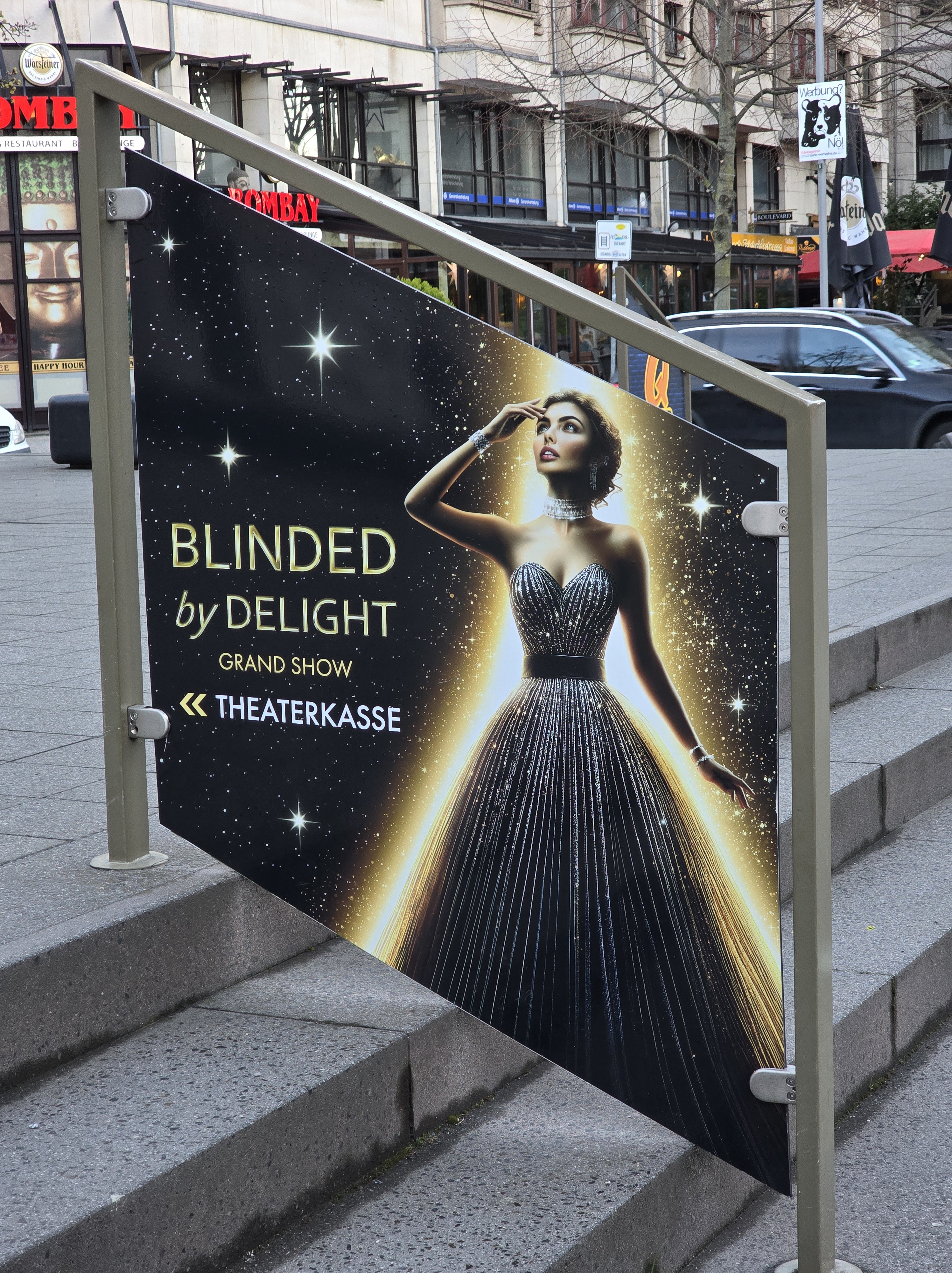 Um 17 Uhr ging es mit dem Bus zurück in die Nähe des Friedrichstadt-Palastes, denn dort sollten wir um 19.30 Uhr in den Genuss der Vorführung „Blinded by Delight“ kommen. Die Zeit bis dahin verbrachten wir in einem italienischen Restaurant mit lustigem Oberkellner, vegetarischer Pizza und leckerem Schwarzbier.
