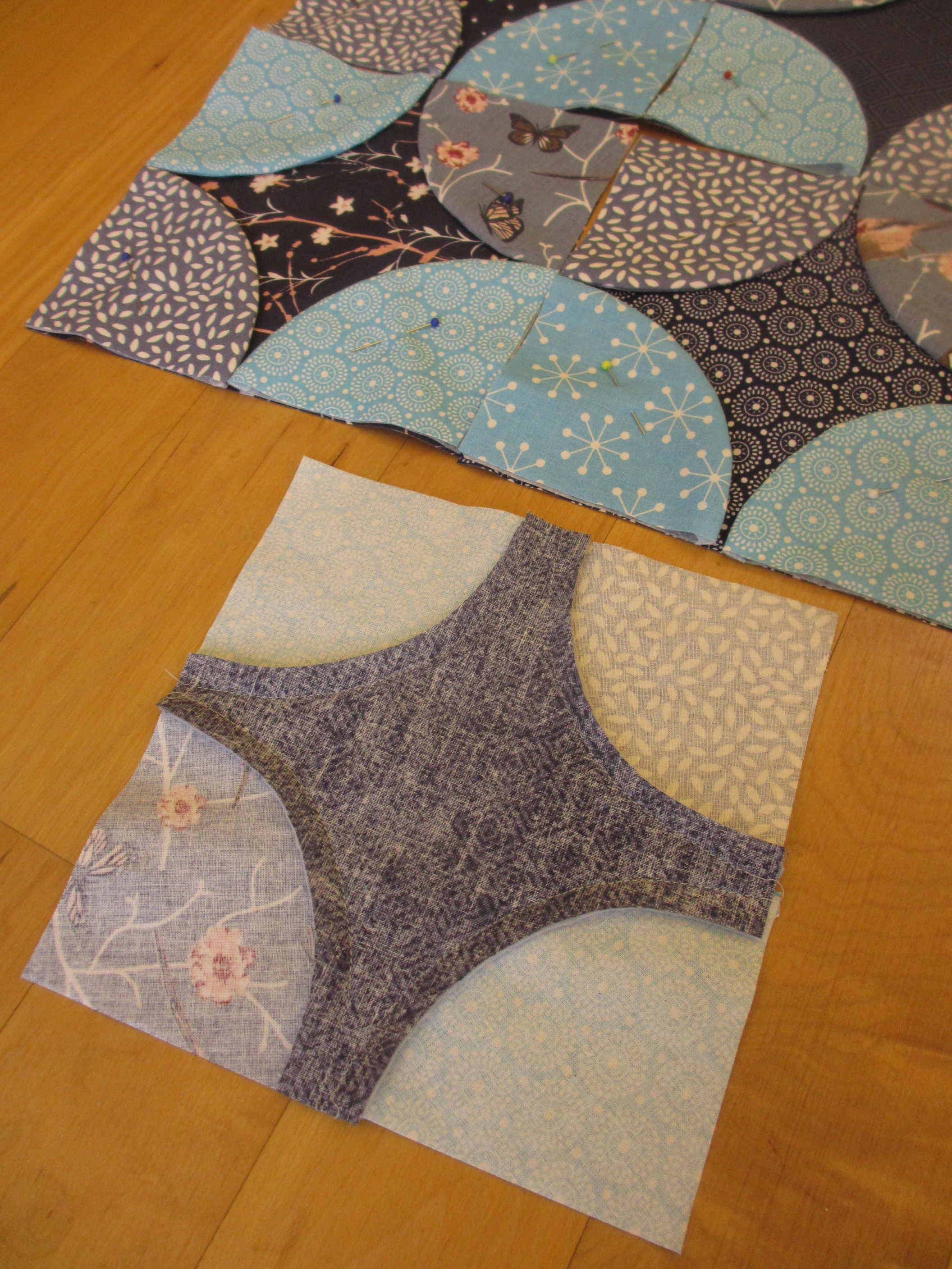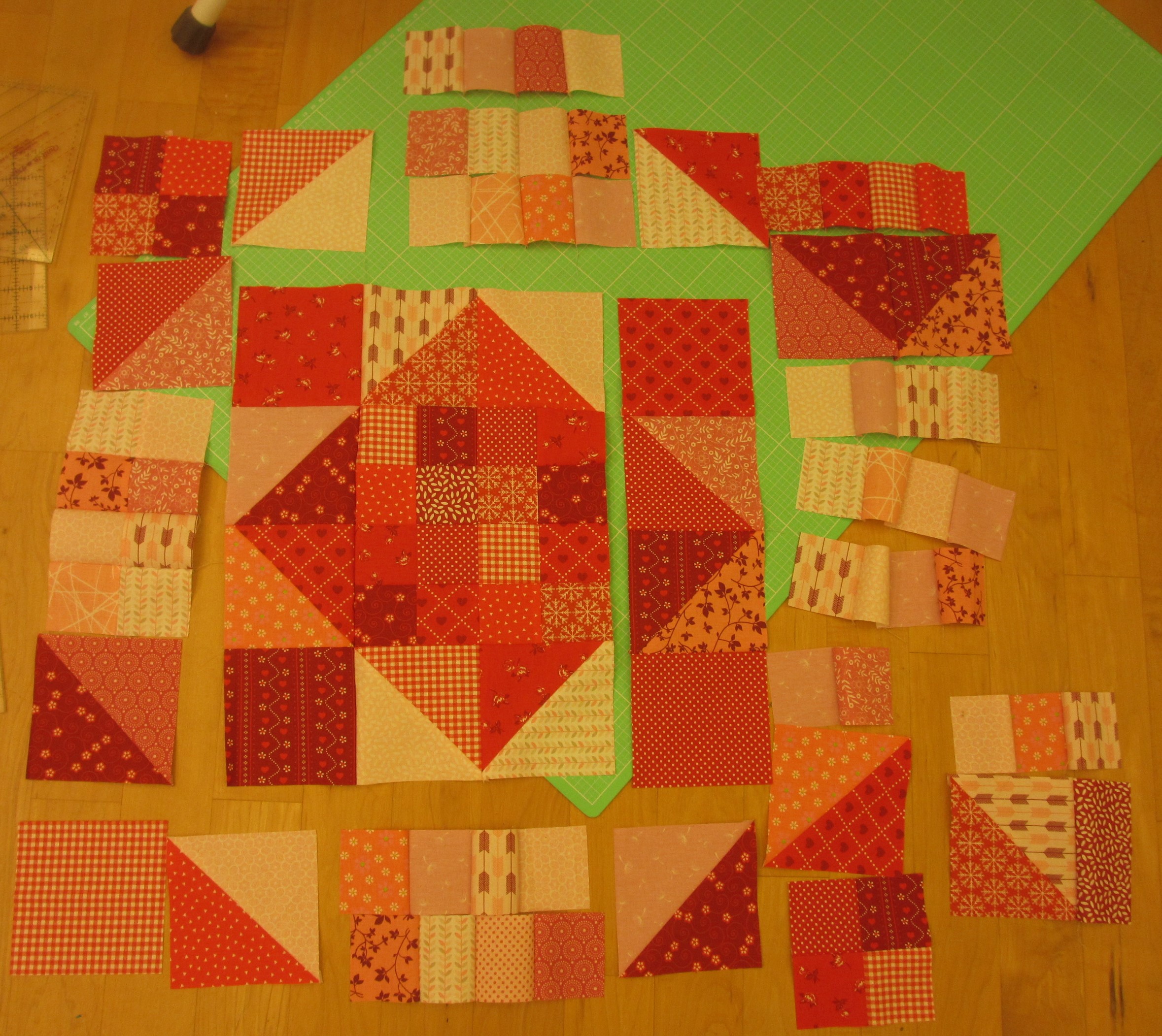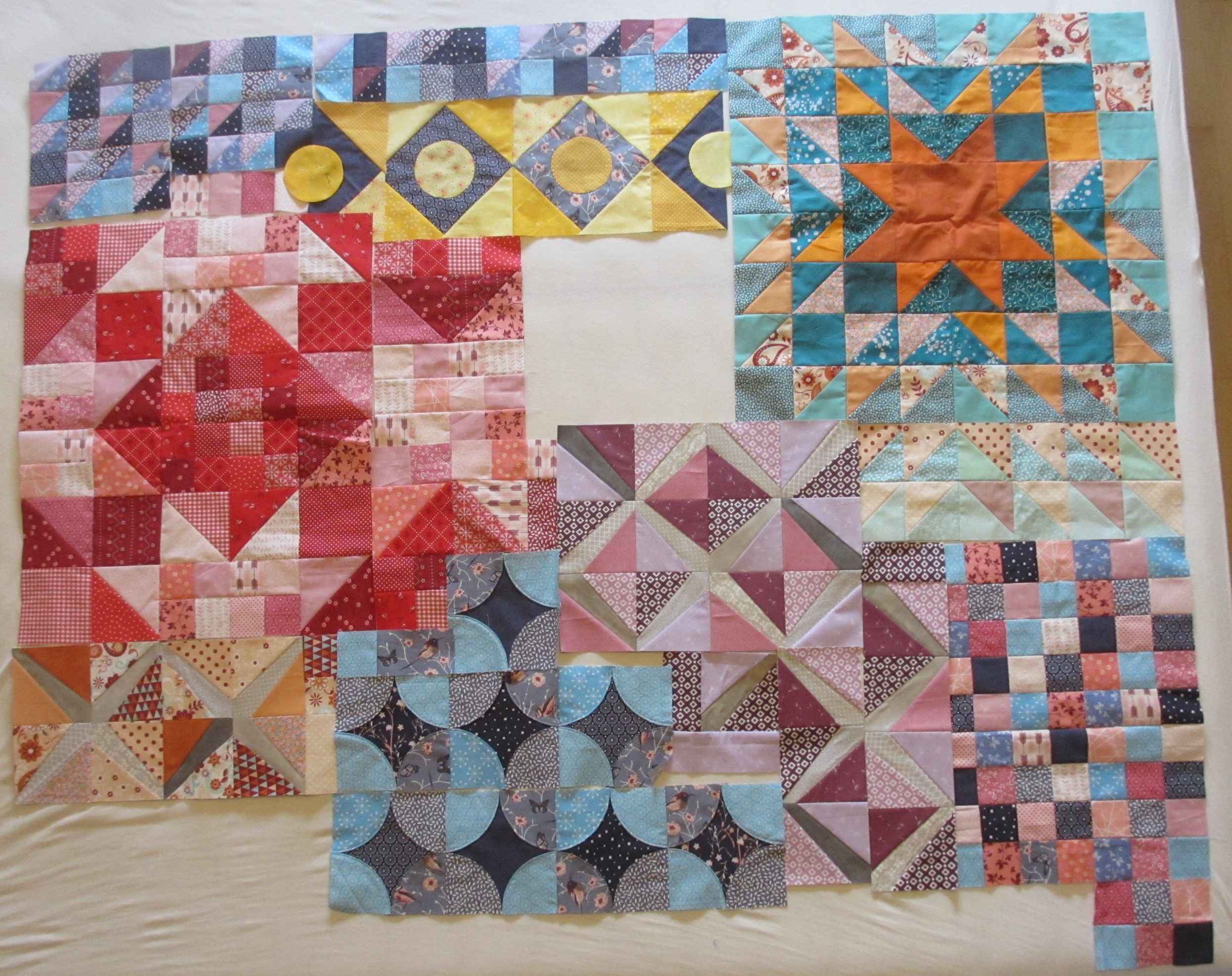 Hier muss ich gestehen, dass der Checkers-Block rechts unten noch gar nicht genäht wurde. Allerdings kann man da ja nicht so viel falsch machen, wenn man schon die Maße hat, ich hoffe einfach, dass sich das irgendwie hinzufügen lässt!