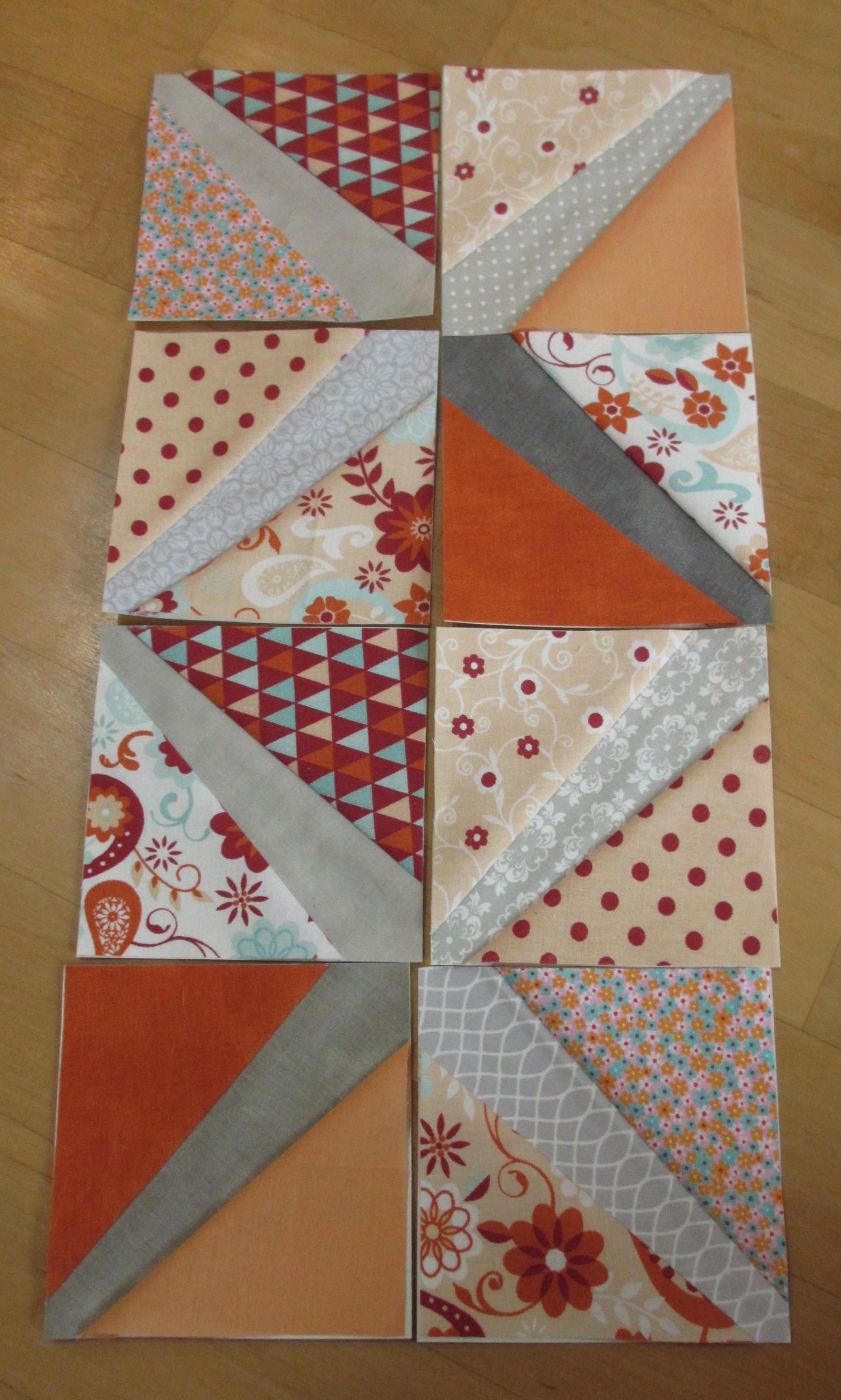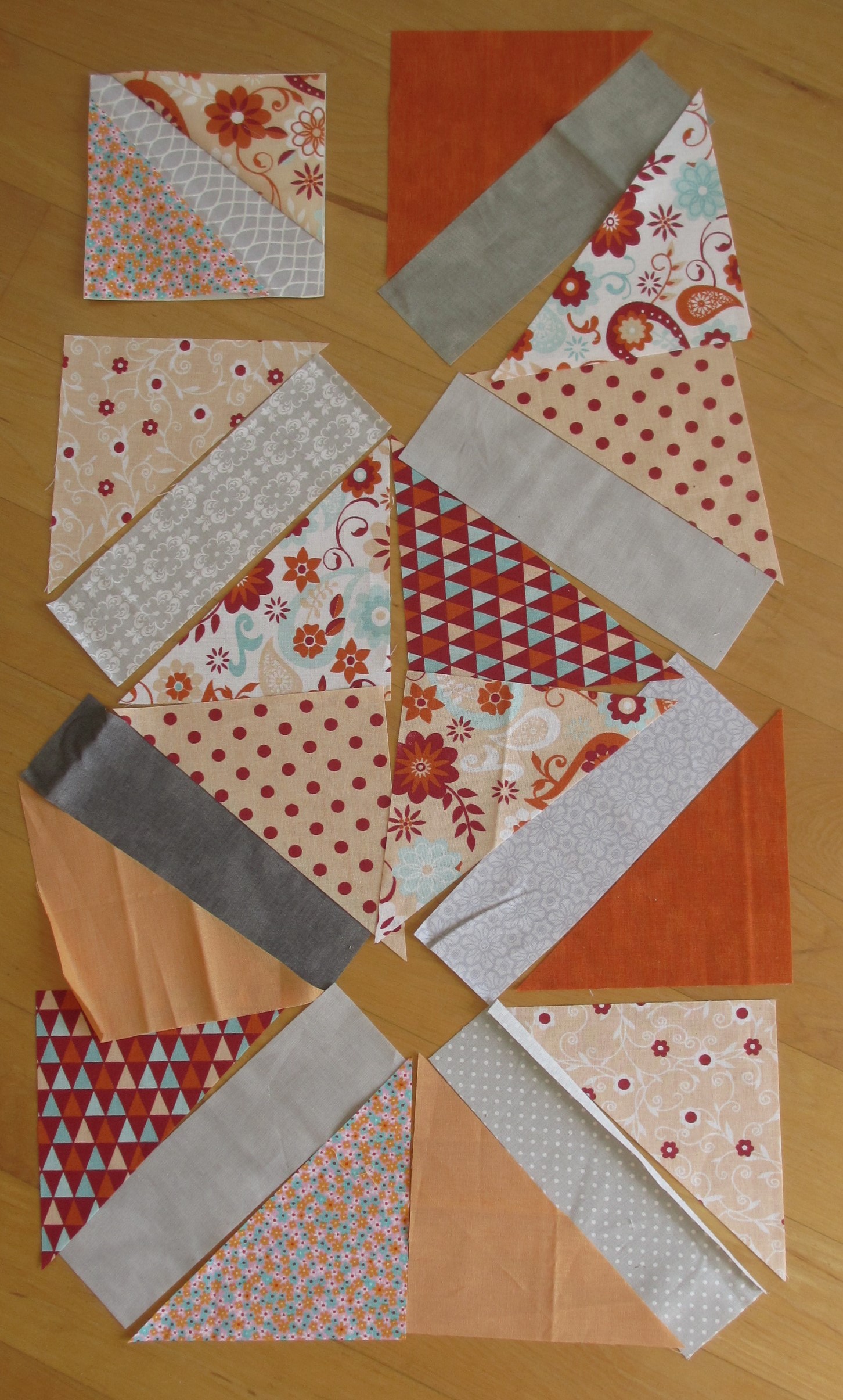 Mit Foundation Paper Piecing. Bei dieser Technik werde ich letzten Endes vom Ergebnis immer ein bisschen überrascht, denn auch die beste Planung wird durch ein falsch angenähtes Teil sofort über den Haufen geworfen. Wobei „falsch“ hier nicht der richtige Ausdruck ist. Eher seitenverkehrt… Man muss also nicht nur die Vorstellung haben, wie ein Block aussieht, wenn er fertig ist – nein, hier ist es außerdem wichtig, die Richtung der grauen Mittelteile schon zu Beginn richtig anzuordnen. An einer Seite sind sie nämlich breiter.