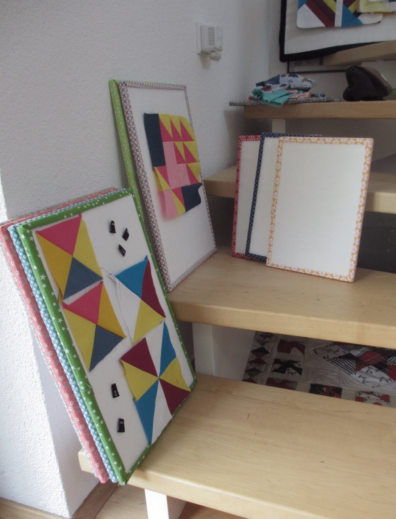 Mit den Leichtschaumplatten hatte ich schon Anfang August zu tun. Eigentlich wollte ich mir nur ein Designboard nach einer Anleitung von Lori Holt basteln. Beim Summer Sampler musste ich bisher bei mehreren Blöcken trennen, weil offenbar der kurze Weg von Bügeleisen zu Nähmaschine ausreichte, alles verkehrt herum anzuordnen…