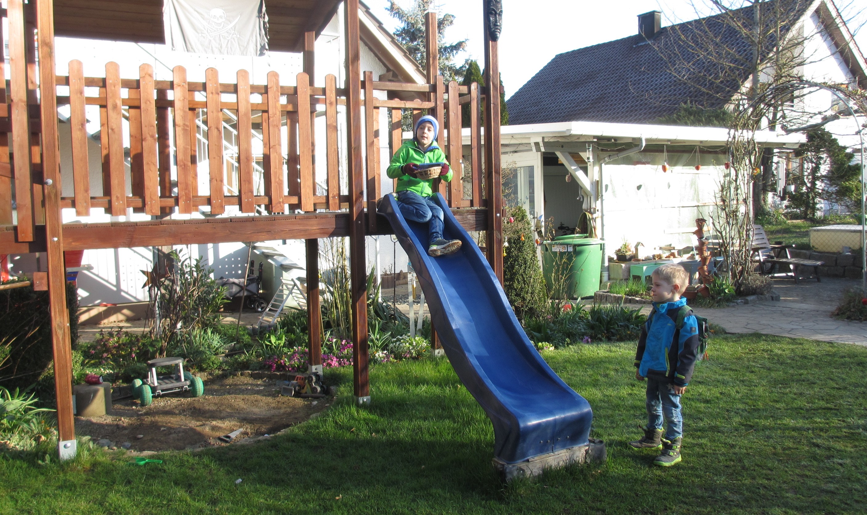 Meinen Geburtstag haben wir am Sonntag mit der Familie bei Kaffee und Kuchen im Garten und auf dem Balkon gefeiert. Zum Mittagessen habe ich mir selbstgemachte Burger gewünscht, die Erdbeerkuchen, die ich kurz zuvor entdeckt hatte (Pudding Erdbeerkuchen ohne backen und Erdbeerkuchen vom Blech mit Haferflocken), waren beide sehr gut und werden bestimmt wieder gemacht. Frederik hat sich am Vormittag leider eine Platzwunde am Hinterkopf zugezogen, weshalb er mit dem Papa eine gute Stunde im Krankenhaus verbracht hat und mit drei Stichen genäht werden musste.