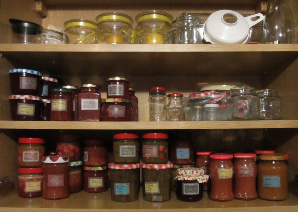 Am Freitag waren wir auf dem Erdbeerfeld und haben 5 kg aufgesammelt. Diese mussten am Nachmittag dann gleich weiterverarbeitet werden. Aus 3 kg Erdbeeren und 1 kg Rhabarber wurden am Freitag 27 Gläser Marmelade. Am nächsten Tag hat es dann noch 10 Gläser Aprikosenmarmelade und Kiwi-Pfirsich-Birne-Marmelade gegeben.