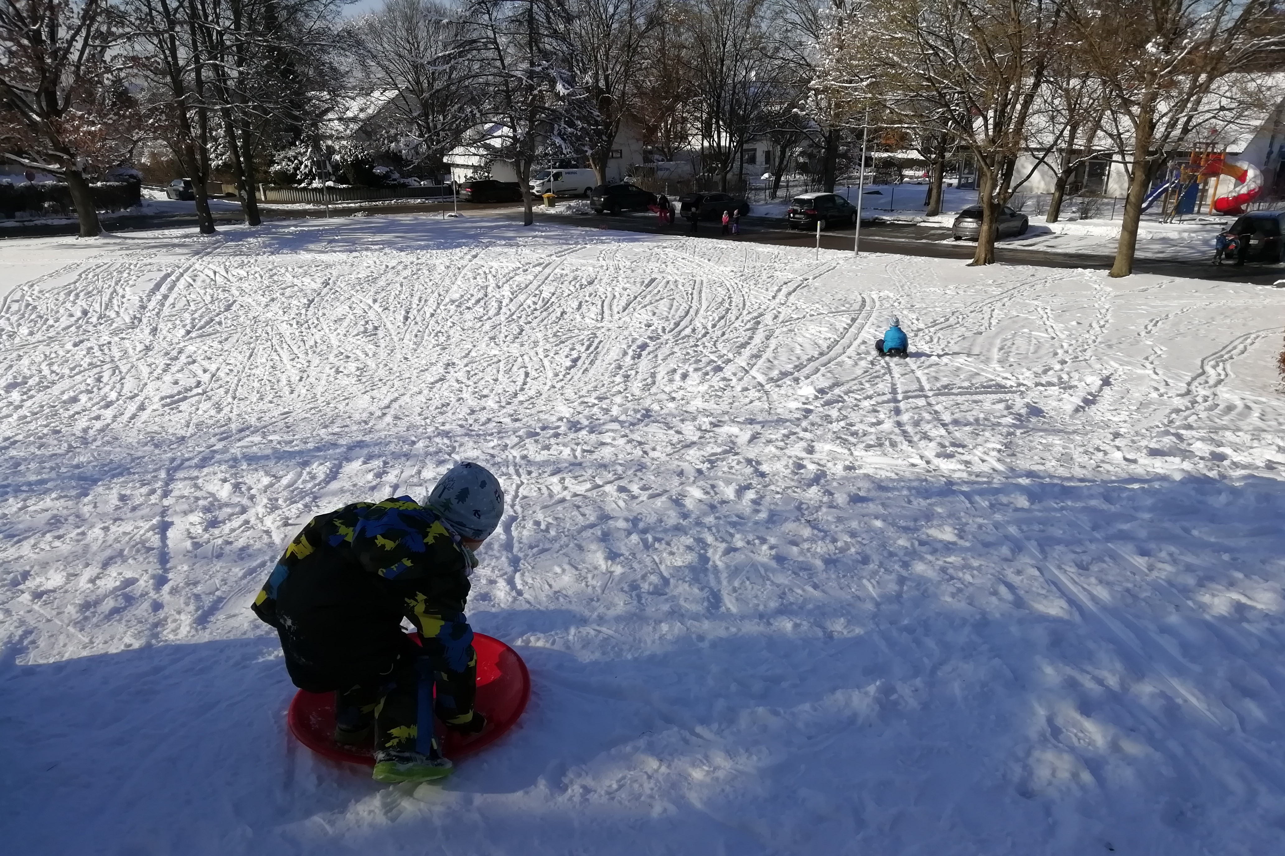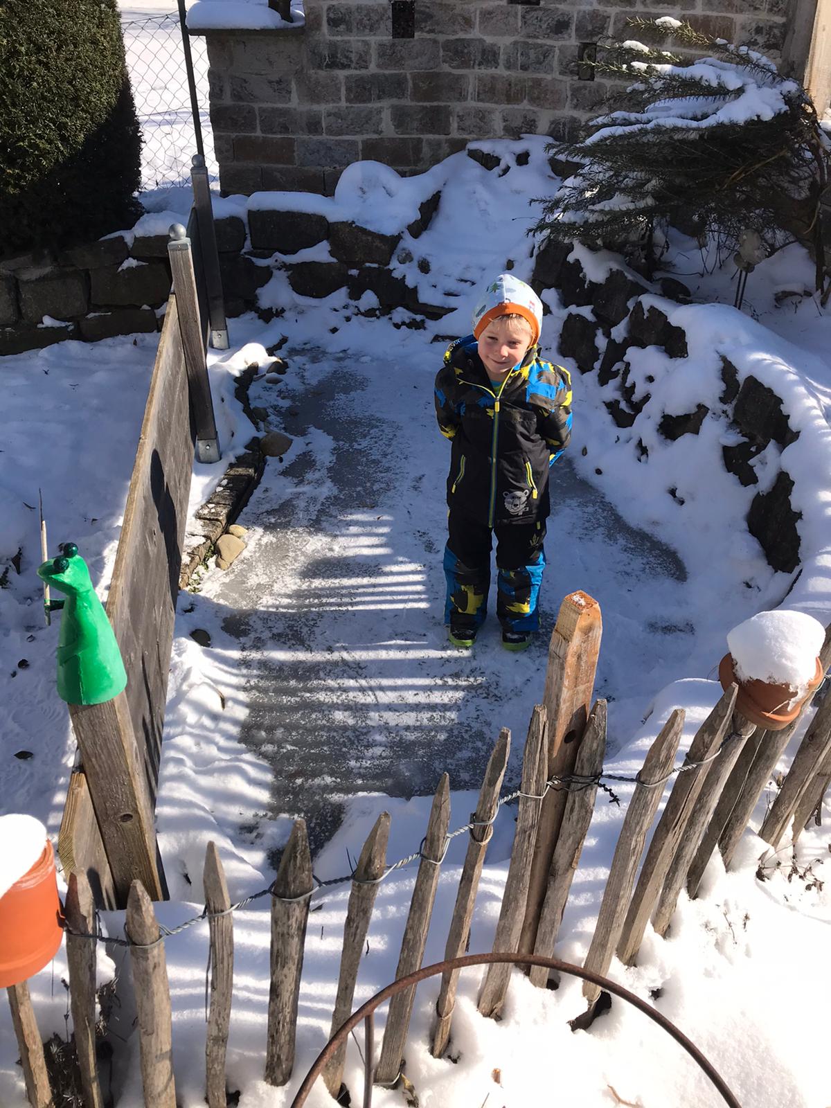 Der Teich ist endlich zugefroren! Frederik und Benjamin haben Eishockey gespielt 🙂 Die Schlittenberge haben wir auch beinahe täglich besucht.
