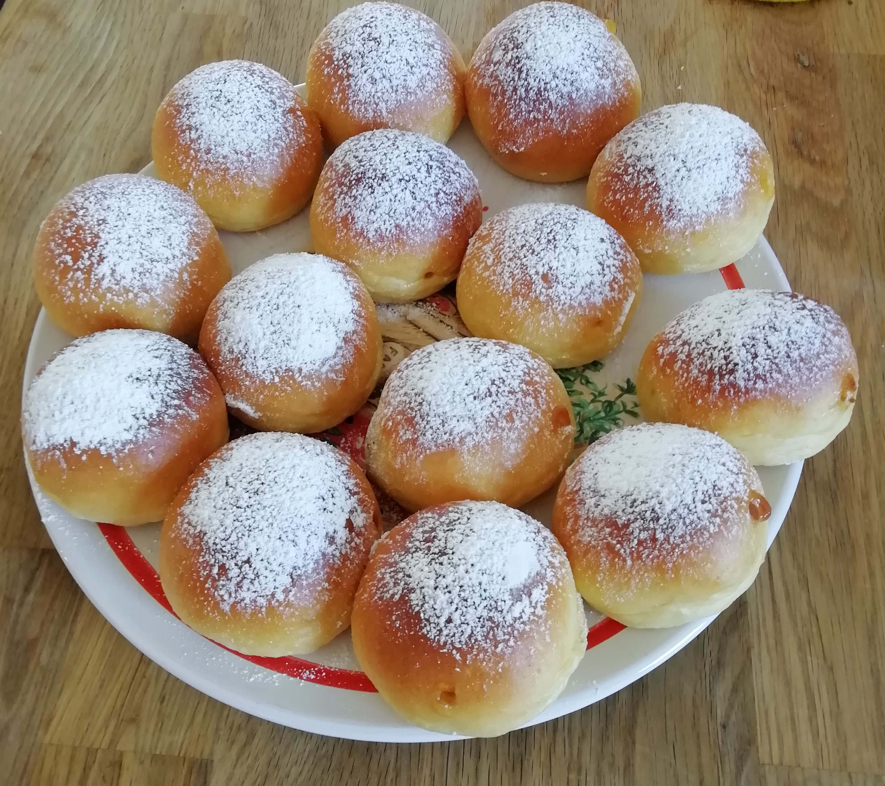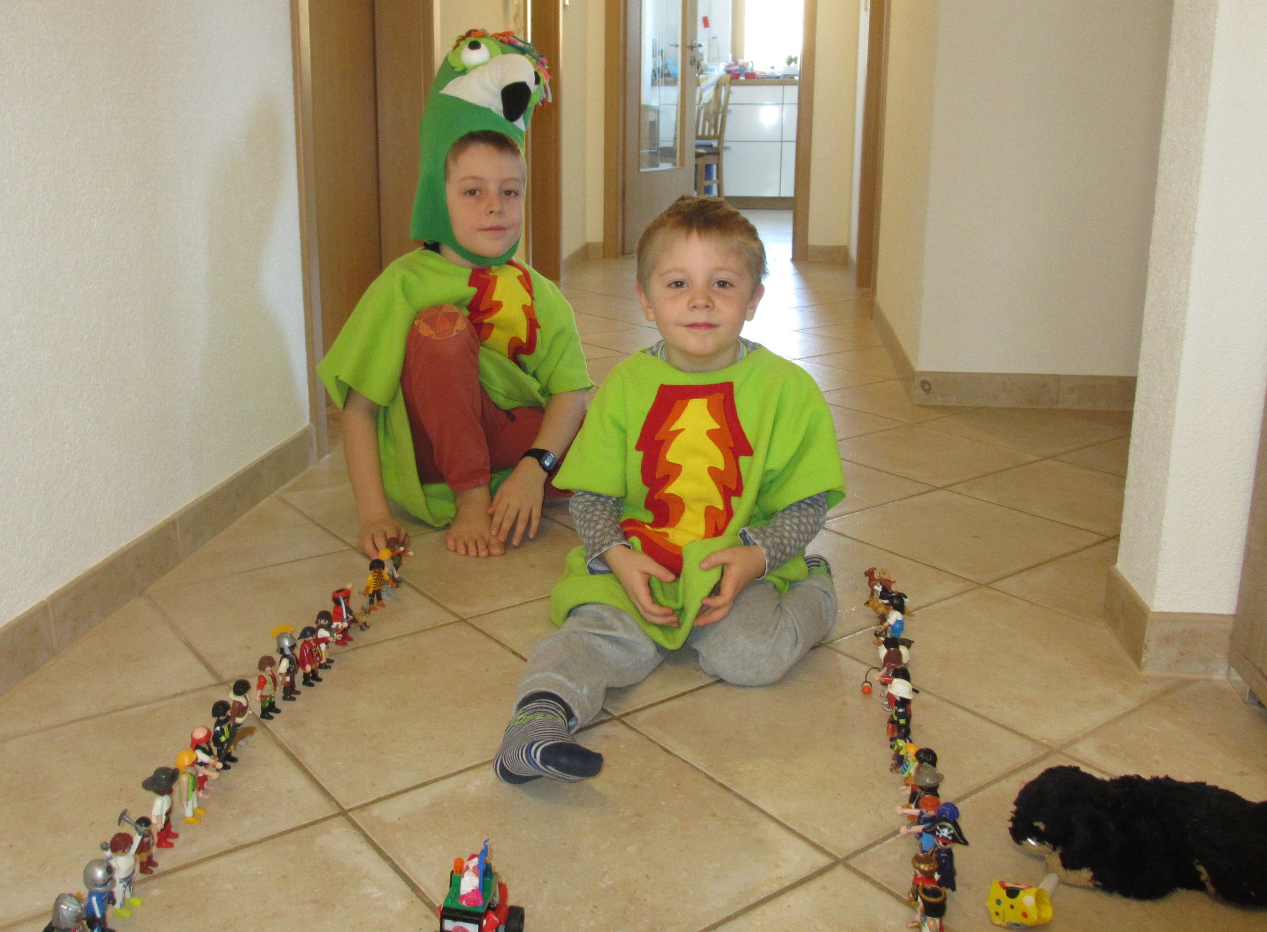 Hauptsächlich wurde gebacken! Um den Fasching wenigstens ein bisschen ins Haus zu holen, sind am Sonntag leckere Krapfen im Backofen entstanden. Das Rezept wurde quasi ums Eck erprobt und notiert und kann hier nachgelesen werden. Wir haben die Krapfen mit gekaufter Aprikosenmarmelade und Erdbeermarmelade aus eigener Produktion gefüllt. Die mit Erdbeermarmelade waren besser 😉 Die Kinder haben sich in der Zwischenzeit verkleidet und einen Playmobil-Lego-Stofftier-Umzug im Flur veranstaltet.